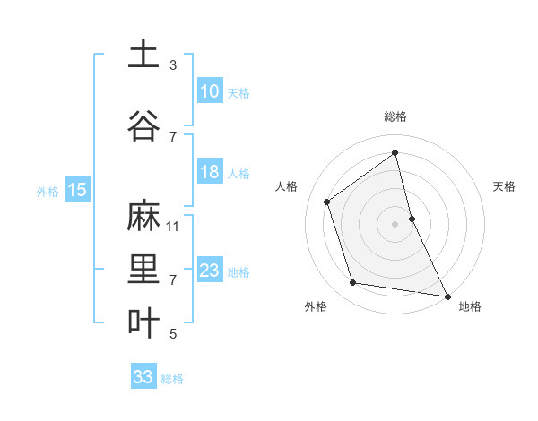 土谷 麻里叶さんを姓名の画数から五運を鑑定