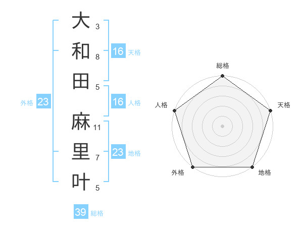 大和田 麻里叶さんを姓名の画数から五運を鑑定