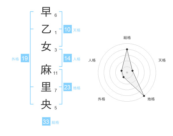 早乙女 麻里央さんの総格は33画の4点!