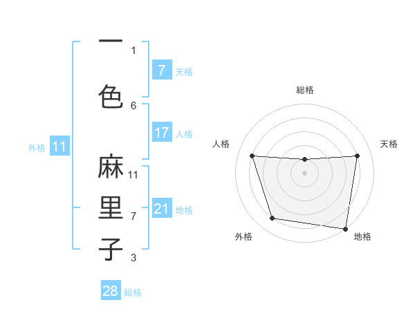 一色 麻里子さんを姓名の画数から五運を鑑定