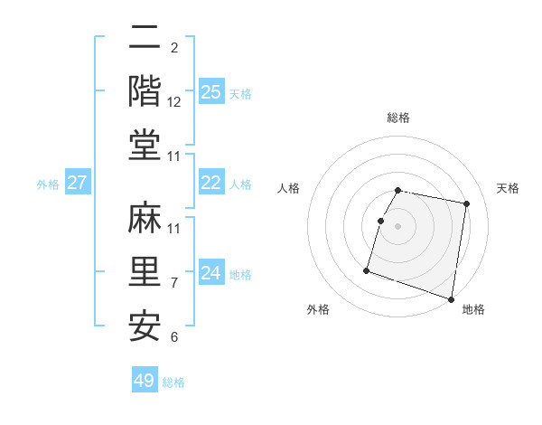 二階堂 麻里安さんを姓名の画数から五運を鑑定