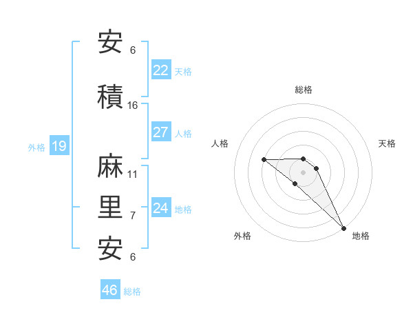 安積 麻里安さんを姓名の画数から五運を鑑定