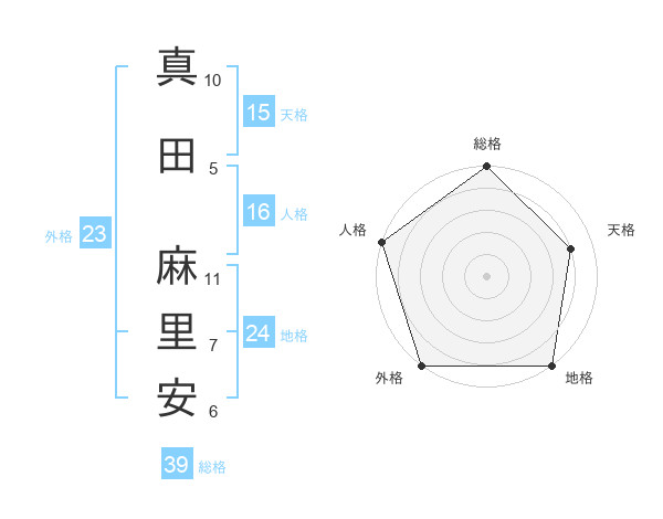 真田 麻里安さんの総格は39画の5点!