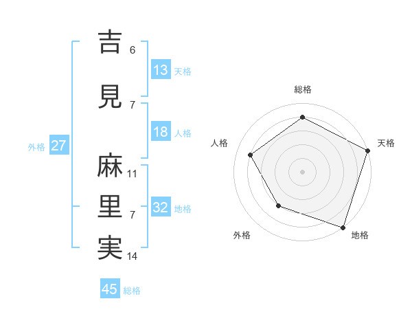 吉見 麻里実さんの天格は13画の5点!