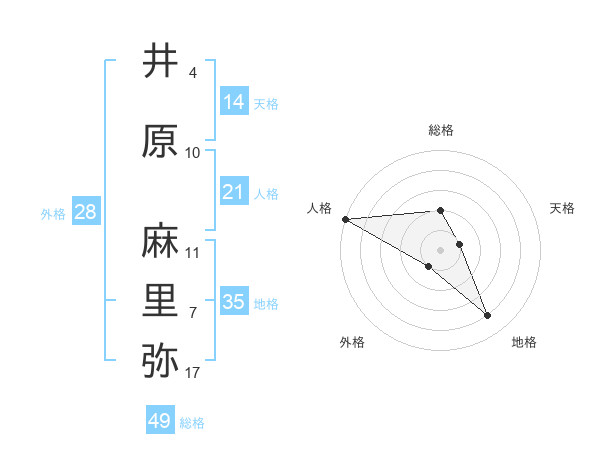 井原 麻里弥さんを姓名の画数から五運を鑑定