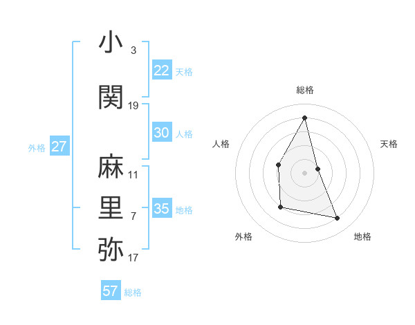 小関 麻里弥さんを姓名の画数から五運を鑑定