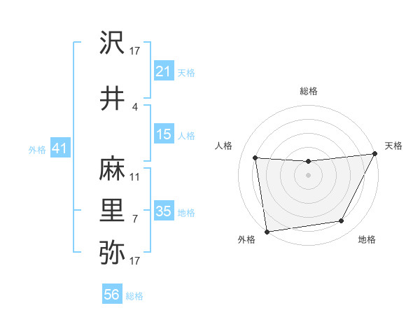沢井 麻里弥さんを姓名の画数から五運を鑑定