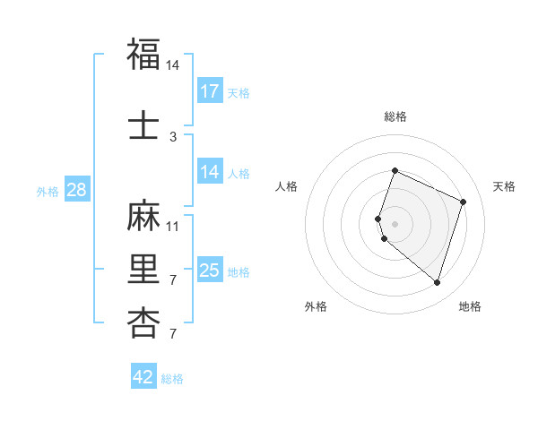福士 麻里杏さんの天格は17画の4点!