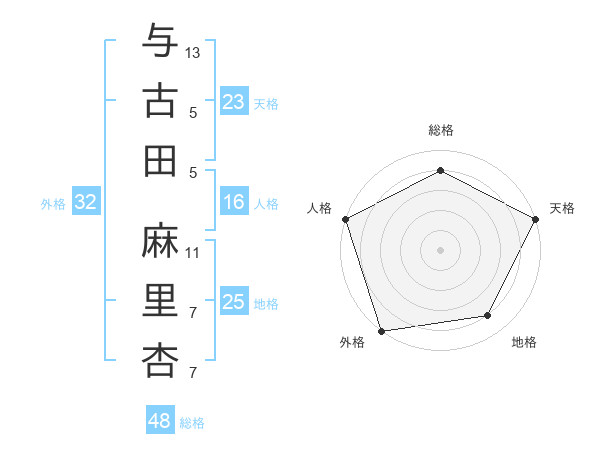 与古田 麻里杏さんを姓名の画数から五運を鑑定