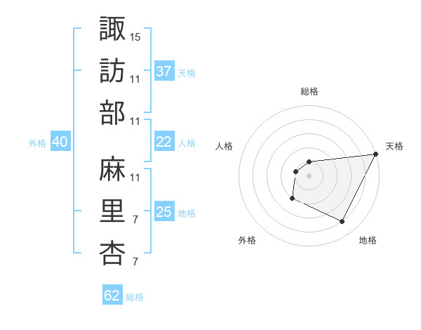 諏訪部 麻里杏さんの天格は37画の5点