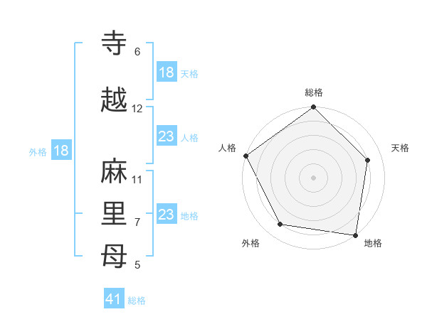 寺越 麻里母さんの天格は18画の4点!