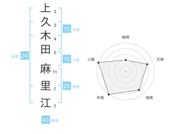 上久木田 麻里江さんの外格は24画の5点!
