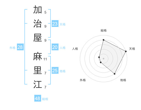 加治屋 麻里江さんを姓名の画数から五運を鑑定