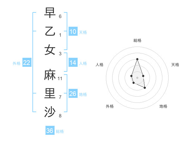早乙女 麻里沙さんを姓名の画数から五運を鑑定