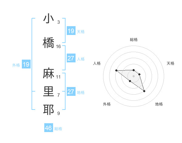 小橋 麻里耶さんを姓名の画数から五運を鑑定