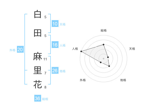白田 麻里花さんを姓名の画数から五運を鑑定
