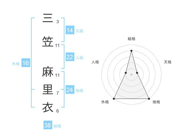 三笠 麻里衣さんの総格は38画の4点!