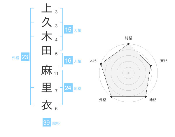 上久木田 麻里衣さんを姓名の画数から五運を鑑定