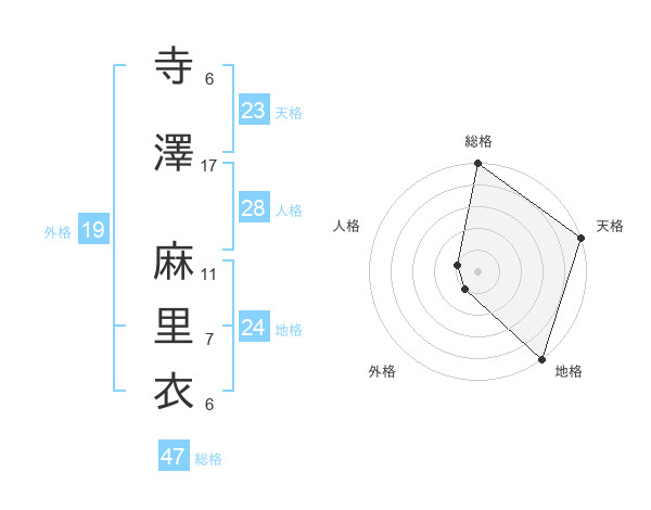 寺澤 麻里衣さんを姓名の画数から五運を鑑定