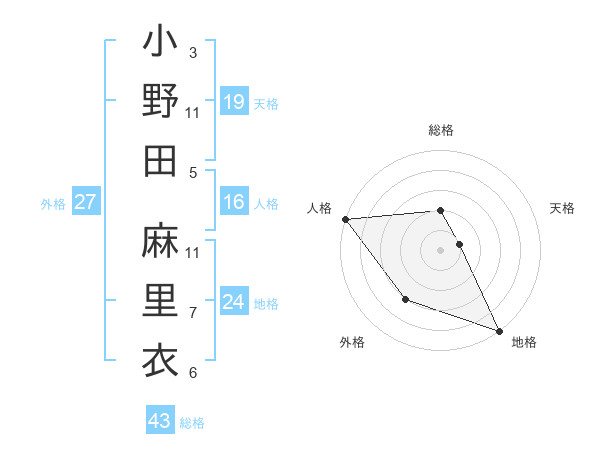 小野田 麻里衣さんを姓名の画数から五運を鑑定