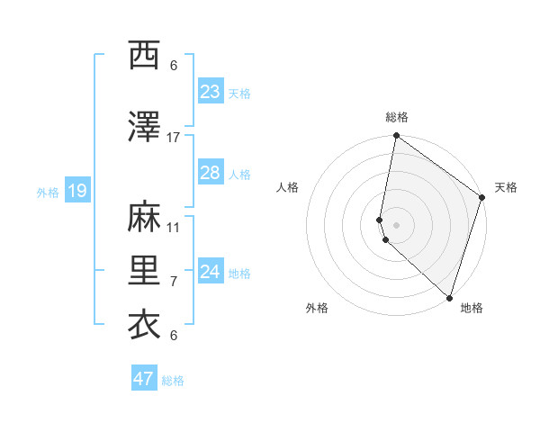 西澤 麻里衣さんを姓名の画数から五運を鑑定
