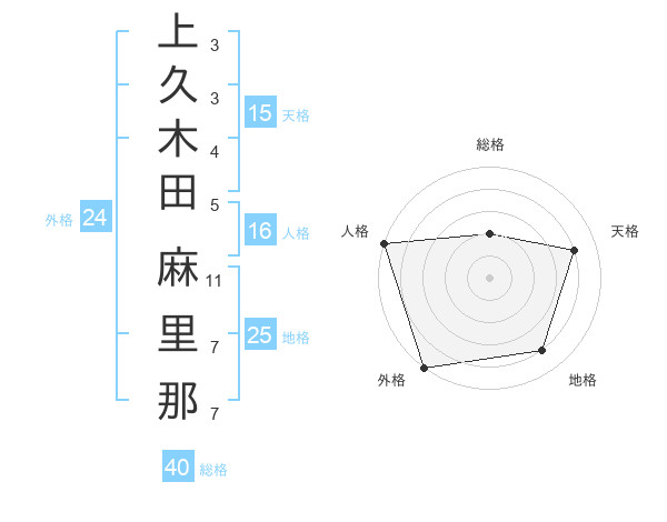 上久木田 麻里那さんを姓名の画数から五運を鑑定