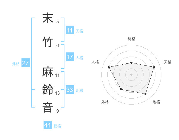 末竹 麻鈴音さんの天格は11画の4点!