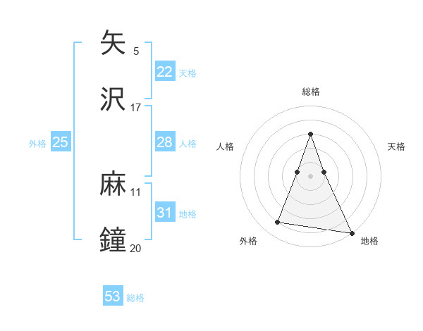 矢沢 麻鐘さんの総格は53画の3点!
