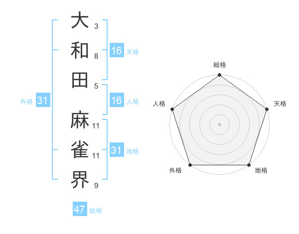 大和田 麻雀界さんの総格は47画の5点