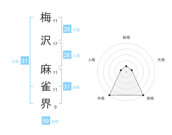 梅沢 麻雀界さんを姓名の画数から五運を鑑定