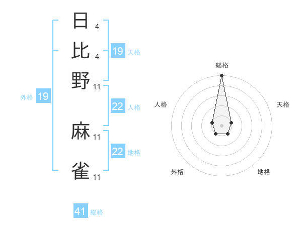 日比野 麻雀さんを姓名の画数から五運を鑑定