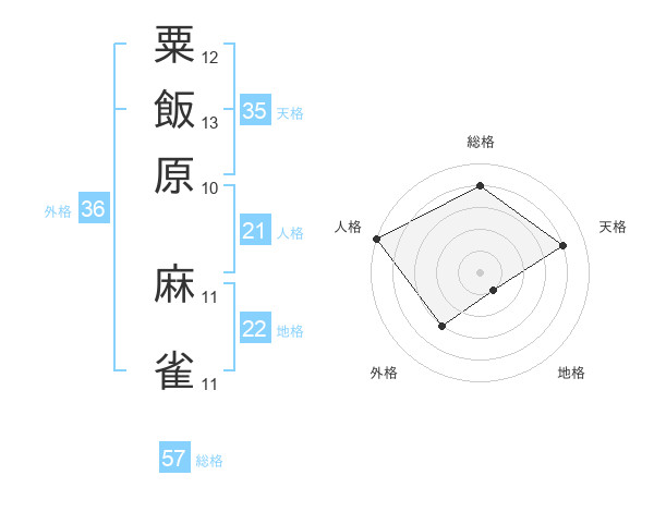 粟飯原 麻雀さんの総格は57画の4点!
