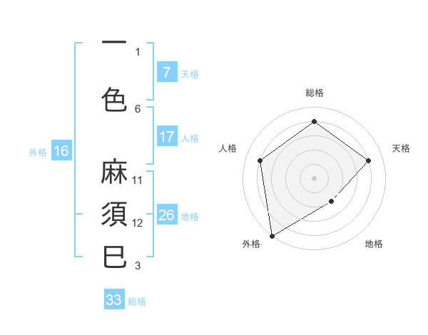 一色 麻須巳さんの総格は33画の4点!