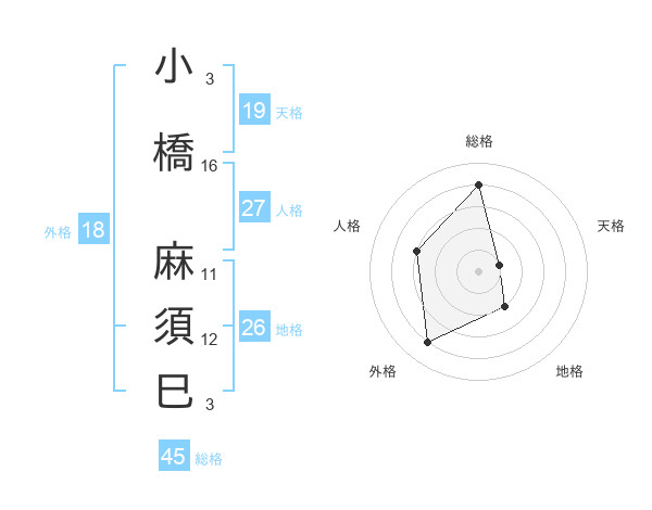 小橋 麻須巳さんの総格は45画の4点!