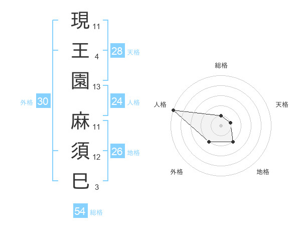 現王園 麻須巳さんを姓名の画数から五運を鑑定