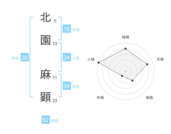 北園 麻顕さんを姓名の画数から五運を鑑定