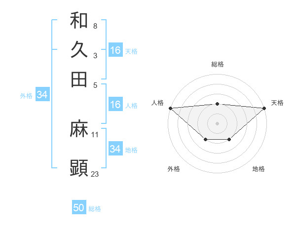 和久田 麻顕さんを姓名の画数から五運を鑑定