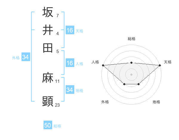 坂井田 麻顕さんの総格は50画の2点!