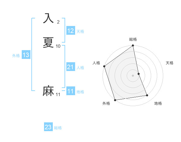 入夏 麻さんの総格は23画の5点!