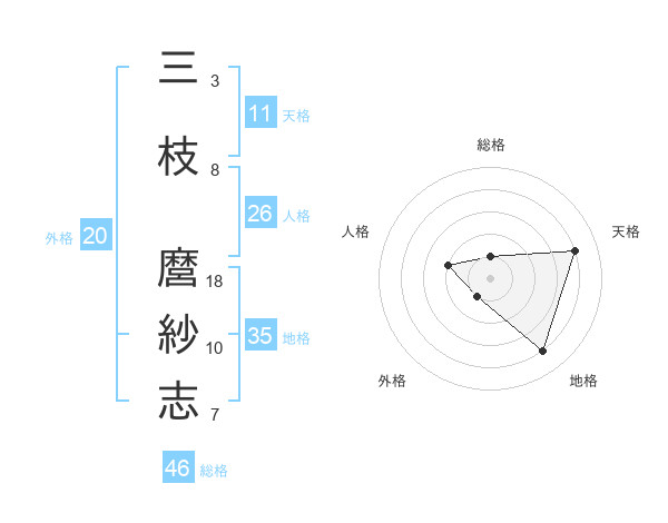 三枝 麿紗志さんを姓名の画数から五運を鑑定