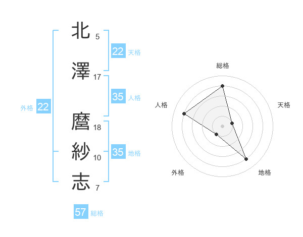 北澤 麿紗志さんを姓名の画数から五運を鑑定