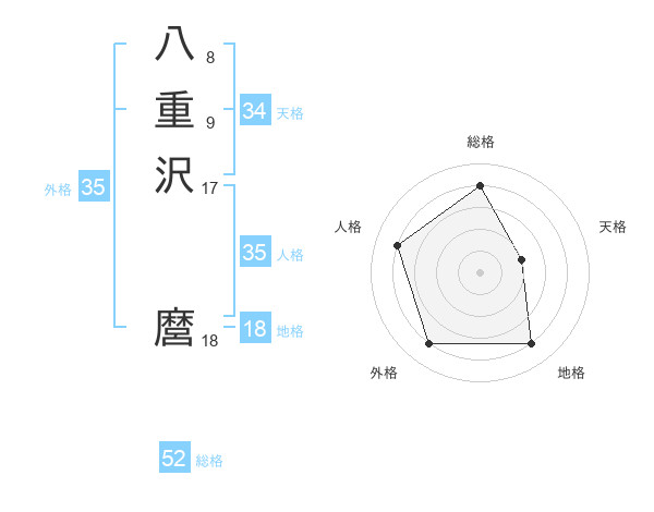 八重沢 麿さんを姓名の画数から五運を鑑定