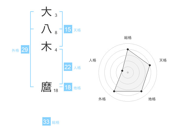 大八木 麿さんの総格は33画の4点!