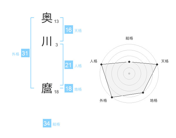 奥川 麿さんの天格は16画の5点!