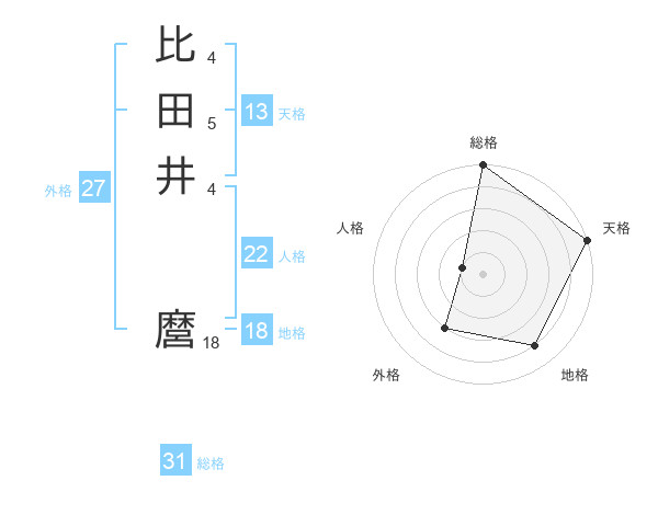 比田井 麿さんの総格は31画の5点!