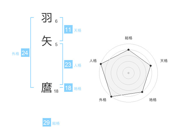 羽矢 麿さんの総格は29画の4点!