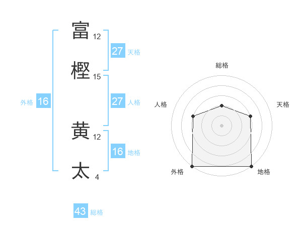 富樫 黄太さんの外格は16画の5点!