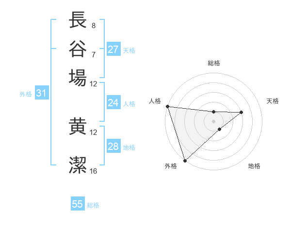 長谷場 黄潔さんを姓名の画数から五運を鑑定