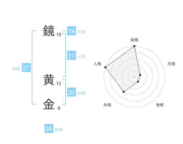 鏡 黄金さんを姓名の画数から五運を鑑定