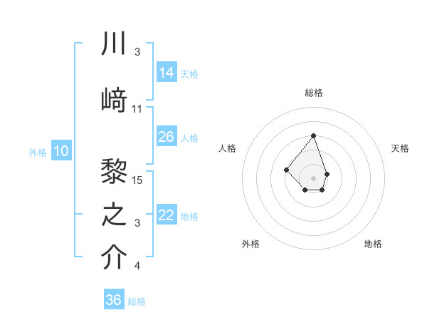 川﨑 黎之介さんを姓名の画数から五運を鑑定